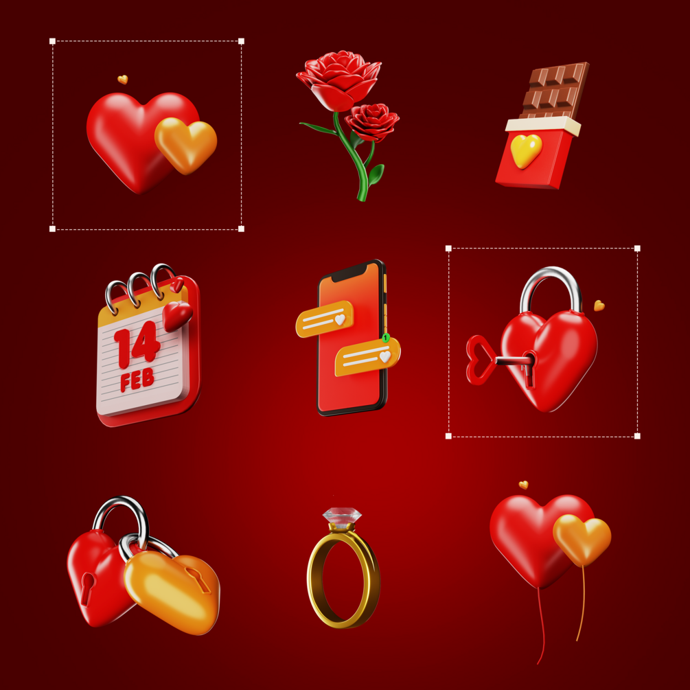 These Valentine's 3D Icons are a token of my appreciation. All optimized for graphics design and UI design